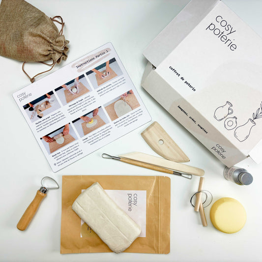 Envie d’un kit pour démarrer avec tout le nécessaire ? Découvrez aussi nos Kits argile auto-durcissante pour des créations sans four, pour faire de la poterie chez soi.